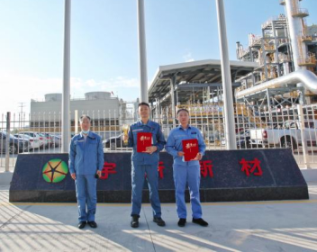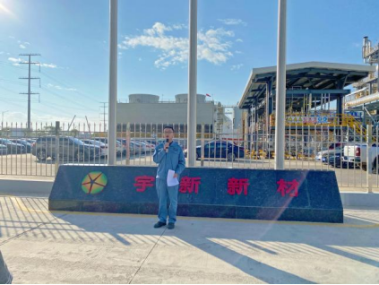 恰逢宇新新材順酐裝置投料試生產(chǎn)在即,為鼓舞順酐開工士氣,此次司慶升旗儀式還新增了順酐開工授旗環(huán)節(jié)。宇新股份總經(jīng)理胡先君依次為宇新新材各部門、班組授旗以振士氣,各部門和班組宣讀誓詞以表決心。