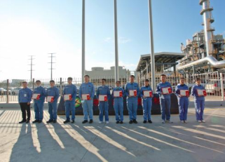 升旗禮畢,旗手歸位。接下來進(jìn)行的是先進(jìn)表彰環(huán)節(jié)。2021年第三季度,張?zhí)烀鳌⑻K利國在惠州市化工行業(yè)技能競賽中榮獲“優(yōu)秀崗位能手”稱號(hào),為公司贏得了榮譽(yù);鄧思思認(rèn)真巡檢,積極查找設(shè)備隱患,被公司評(píng)為安全標(biāo)兵;姚妙華、郭靜、胡燦等51人表現(xiàn)優(yōu)異分別被公司評(píng)為季度新星、進(jìn)步之星、季度明星。周總宣讀表彰決定后,王總、譚總、劉總、胡總、胡董分別為獲獎(jiǎng)人員頒發(fā)了證書、獎(jiǎng)金并合影留念。此外,譚總還宣布了司慶活動(dòng)中籃球比賽的冠、亞軍,并為他們頒發(fā)了獎(jiǎng)杯和獎(jiǎng)金。