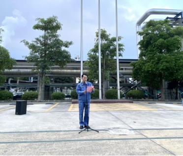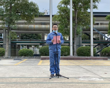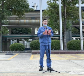 升旗禮畢,旗手歸位。接下來是員工代表祝呵呵作國旗下發言。來自宇新新材班組的祝呵呵分享了順酐開工中的一些感想:這次的順利開車,上至胡董,下至員工,無不讓我感受到公司良好的工作氛圍和強大的凝聚力。在即將來臨的新的一年里,面對新的任務,祝呵呵代表全體員工鄭重承諾:我們有決心、有信念克服各種困難,高標準、高質量、高效率地完成公司交給我們的神圣使命。
