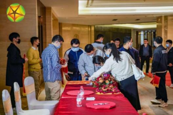 會場張燈結彩,洋溢著喜慶祥和的節日氣氛。領導、同事們陸續到場,簽到并合影留念,燈光閃爍,火紅的背景映著大家燦爛的笑容格外鮮艷。