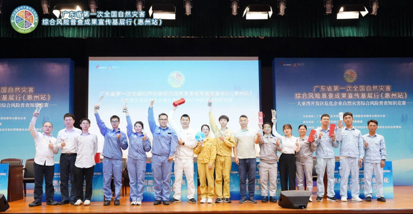 喜訊!2023年5月26日下午,廣東省第一次全國自然災(zāi)害綜合風(fēng)險普查成果宣傳基層行(惠州站)——大亞灣開發(fā)區(qū)危化企業(yè)自然災(zāi)害綜合風(fēng)險普查知識競賽在大亞灣石化區(qū)技能鑒定培訓(xùn)中心多功能廳隆重舉行。宇新化工代表隊(雒彥、李星諭、張智雄)榮獲“一等獎”,李星諭榮獲“最佳答題王”榮譽(yù)稱號。